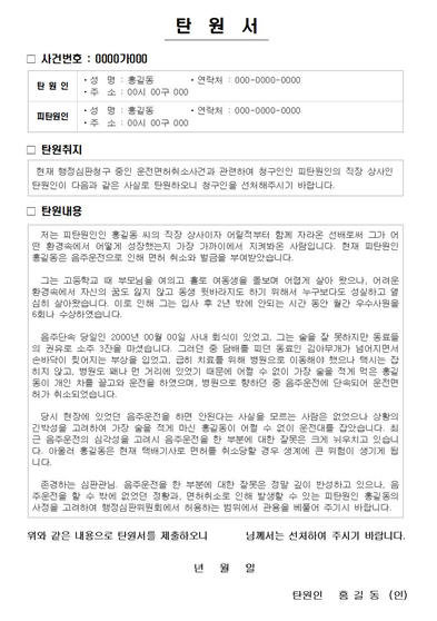 음주운전 탄원서