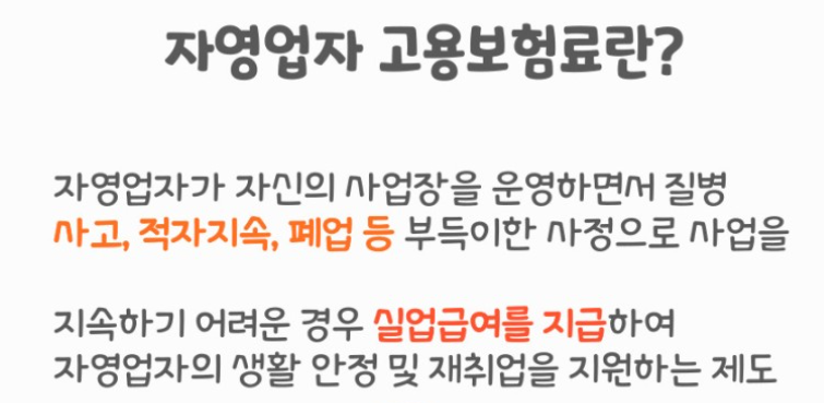 실업급여를 지급하여 자영업자의 생활 안정 및 재취업을 지원하는 제도입니다.* 자영업자의 고용보험은 의무가 아니기 때문에 본인의 희망에 따라 신청이 가능합니다.